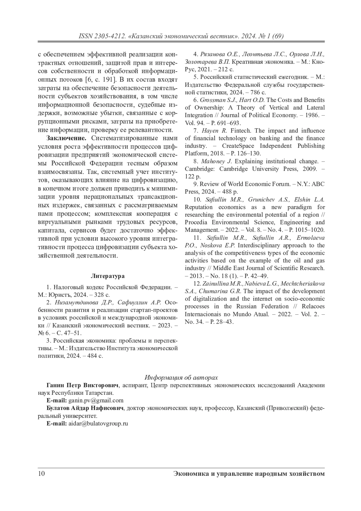 6. Grossman S.J., Hart O.D. The Costs and Benefits of Ownership: A Theory of Vertical and Lateral Integration // Journal of Political Economy. - 1986. - Vol. 94. - P. 691-693.