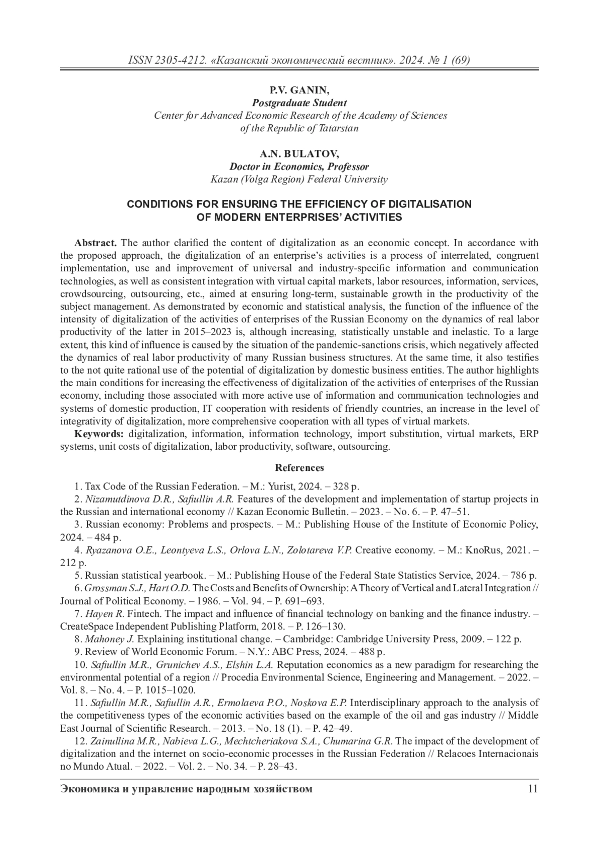 12. Zainullina M.R., Nabieva L.G., Mechtcheriakova S.A., Chumarina G.R. The impact of the development of digitalization and the internet on socio-economic processes in the Russian Federation // Relacoes Internacionais no Mundo Atual. - 2022. - Vol. 2. - No. 34. - P. 28-43.