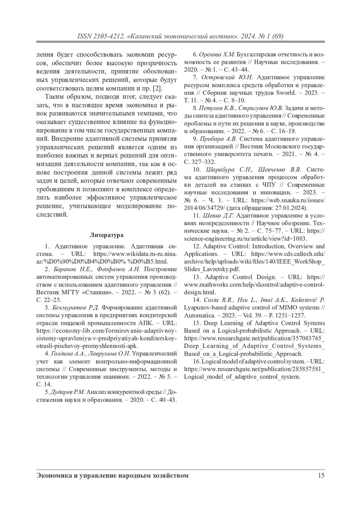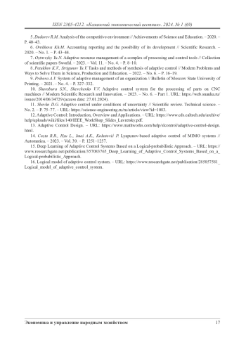 11. Шевко Д.Г. Адаптивное управление в условиях неопределенности // Научное обозрение. Технические науки. - № 2. - С. 75-77. - URL: https://science-engineering.ru/ru/article/view?id=1083.