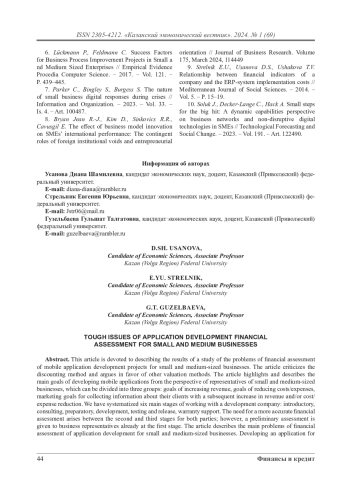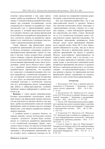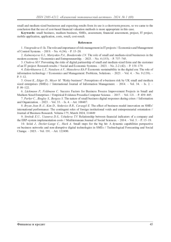 3. Чалова М.В. Предупреждение рисков цифрового партнерства малых и средних фирм и заказчика IT-проекта: результаты исследования // Социальные и экономические системы. - 2023. - № 2-2 (42). - С. 158-179.