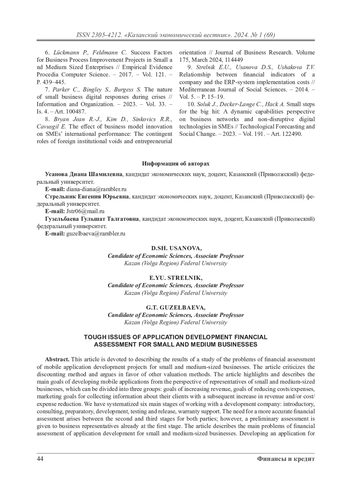 9. Strelnik E.U., Usanova D.S., Ushakova T.V. Relationship between financial indicators of a company and the ERP-system implementation costs // Mediterranean Journal of Social Sciences. - 2014. - Vol. 5. - P. 15-19.