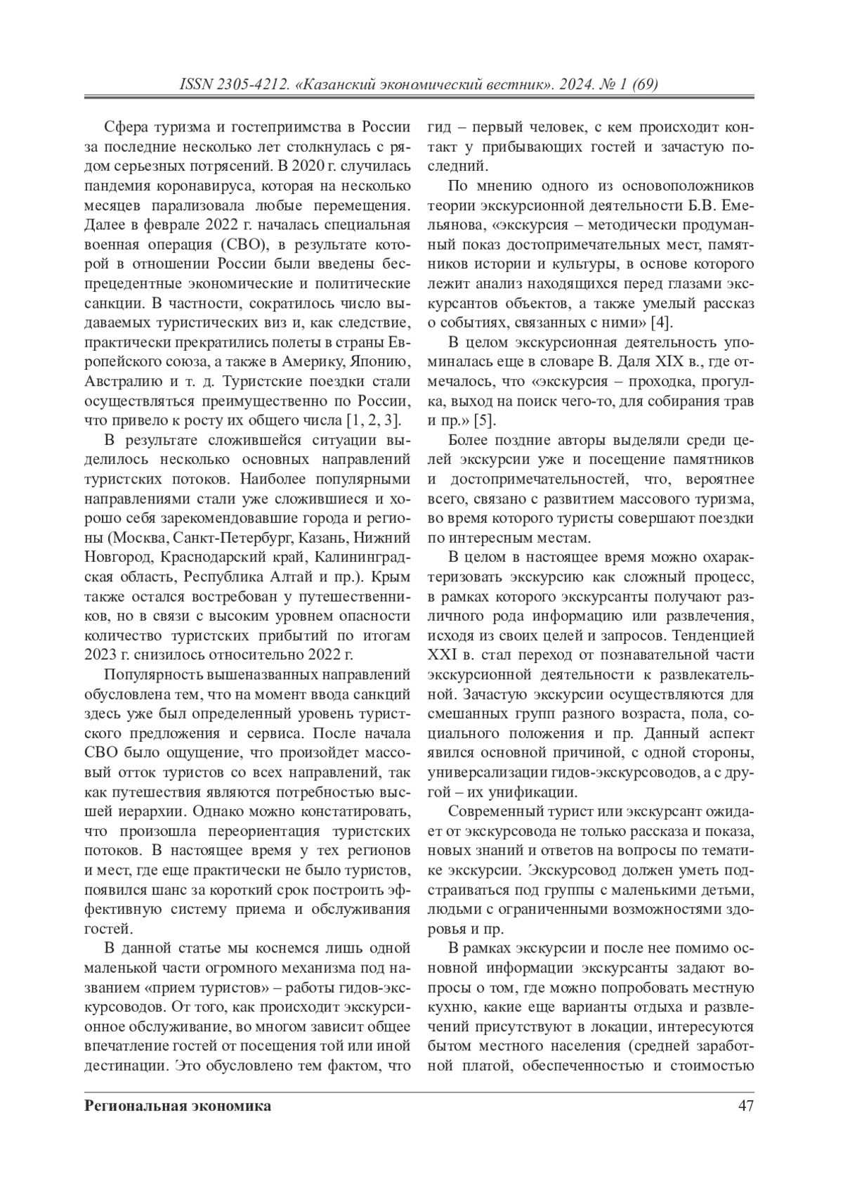 3. Кабанова Е.Е. Влияние экономических санкций на развитие российского туризма // Экономическое развитие России. - 2023. - Т. 30. - № 2. - С. 51-59.