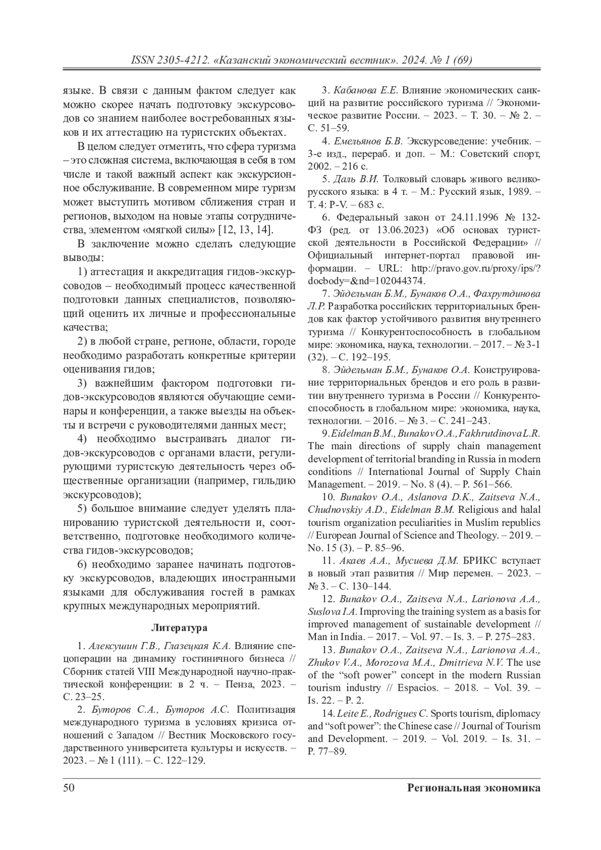 13. Bunakov O.A., Zaitseva N.A., Larionova A.A., Zhukov V.A., Morozova M.A., Dmitrieva N.V. The use of the “soft power” concept in the modern Russian tourism industry // Espacios. - 2018. - Vol. 39. - Is. 22. - P. 2.