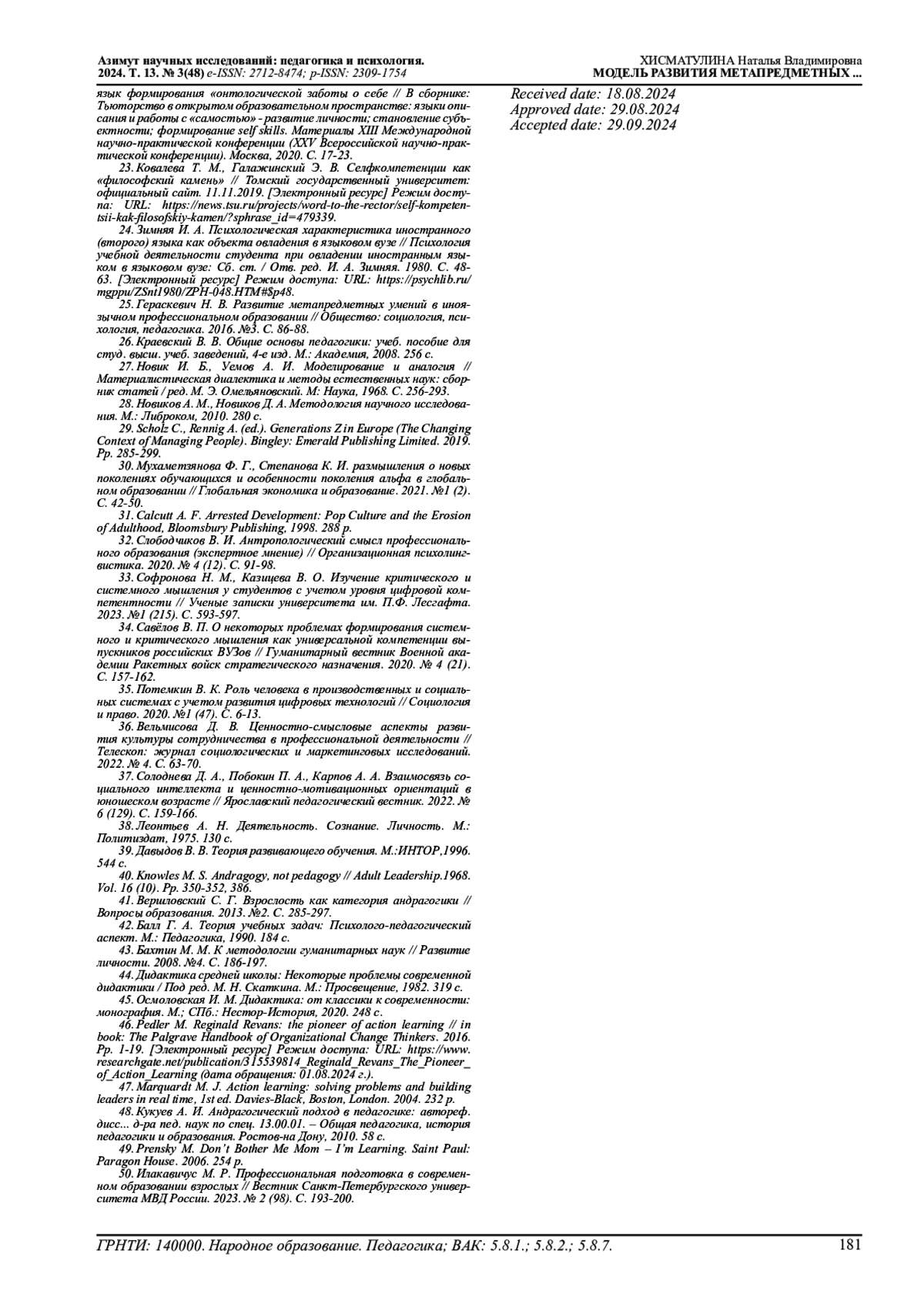 30. Мухаметзянова Ф. Г., Степанова К. И. размышления о новых поколениях обучающихся и особенности поколения альфа в глобальном образовании // Глобальная экономика и образование. 2021. №1 (2). С. 42-50. EDN: LNTHNG