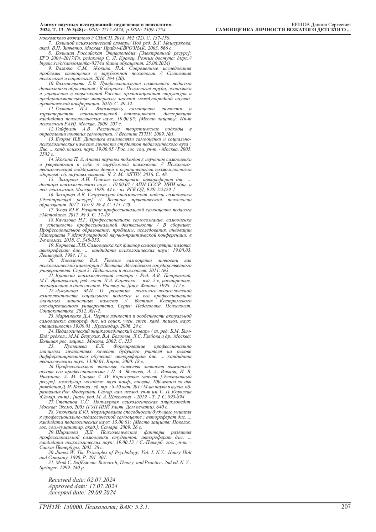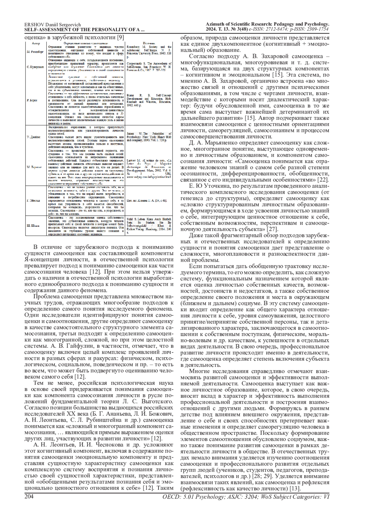 9. Валявко С.М., Жокина П.А. Современные исследования проблемы самооценки в зарубежной психологии // Системная психология и социология. 2016. №4 (20). EDN: XSASCD