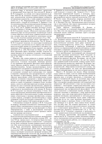 В современных историко-психологических исследованиях [1; 2] актуализируется интерес к истории зоопсихологии и сравнительной психологии: изучается как становление самих отраслей, так и творчество их представителей [3–9].