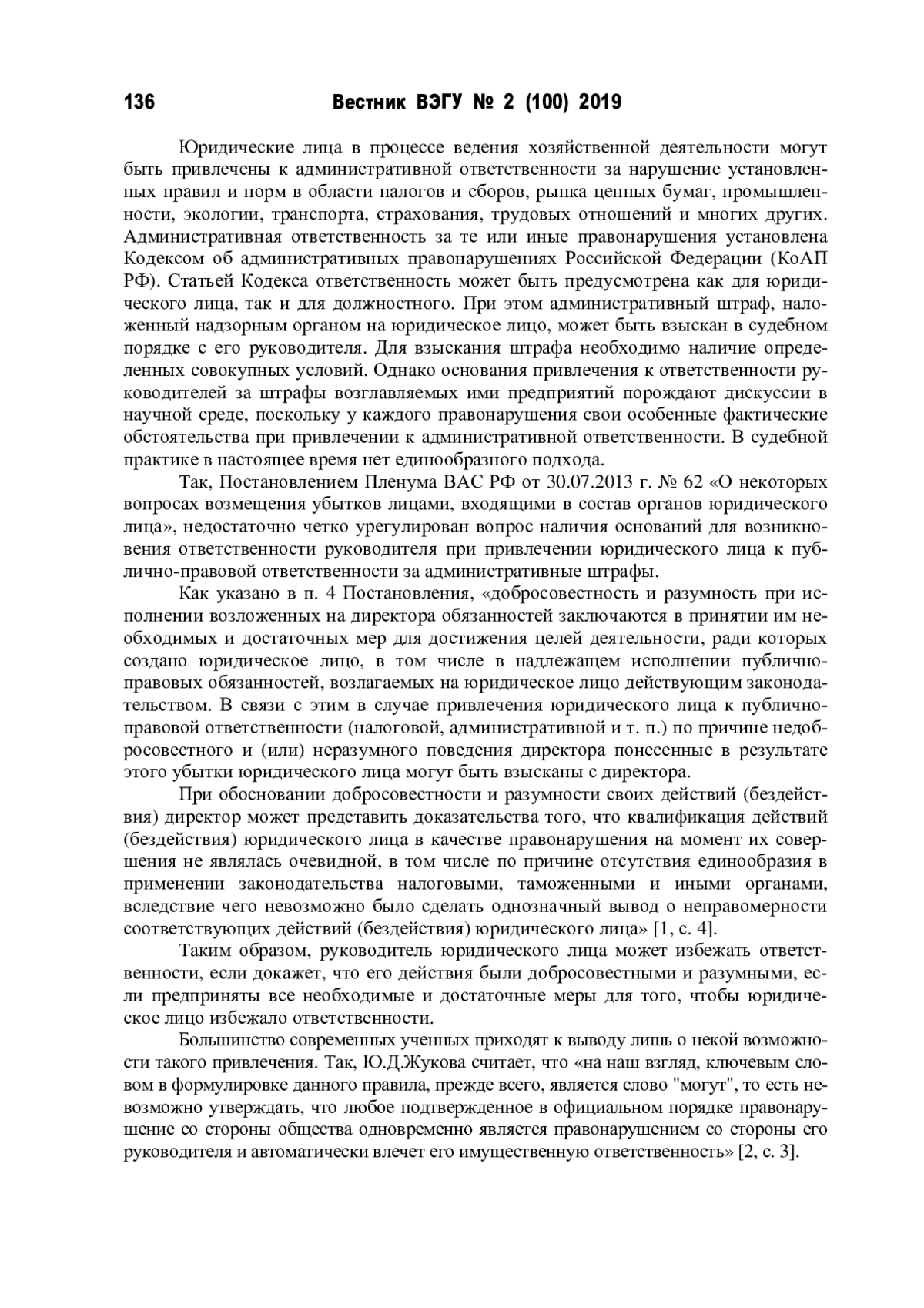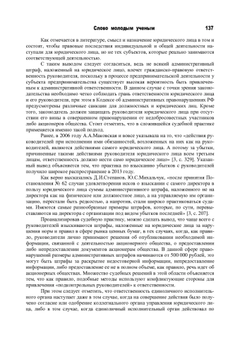 2. Жукова Ю.Д. Проблемные аспекты установления оснований ответственности руководителя за убытки в виде штрафов за нарушение организацией публично-правовых требований: сборник статей / под ред. С.Д. Могилевского, М.А. Егоровой. М.: Института права и национальной безопасности: Юстицинформ, 2017. 484 с.