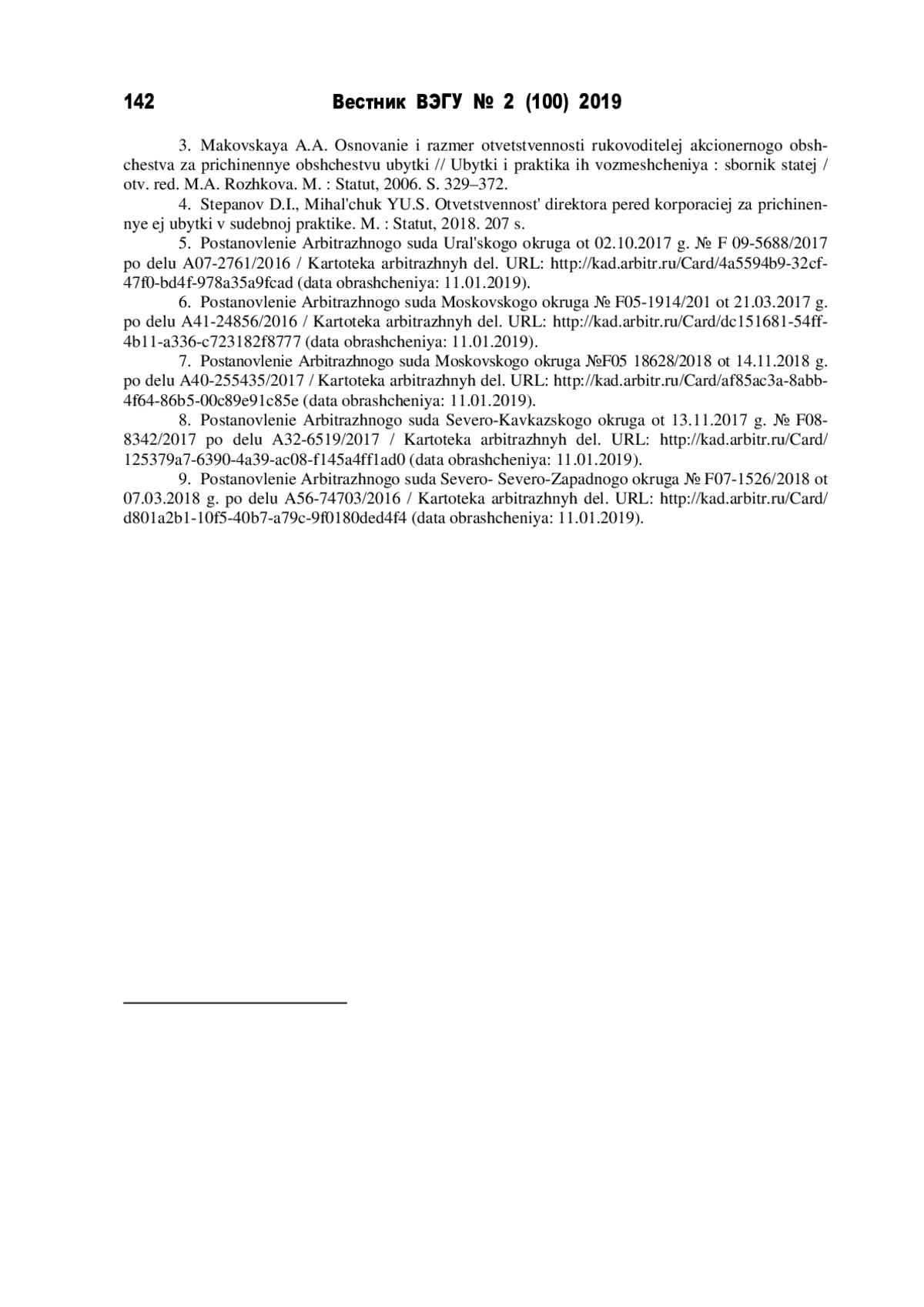 4. Степанов Д.И., Михальчук Ю.С. Ответственность директора перед корпорацией за причиненные ей убытки в судебной практике. М.: Статут, 2018. 207 с.