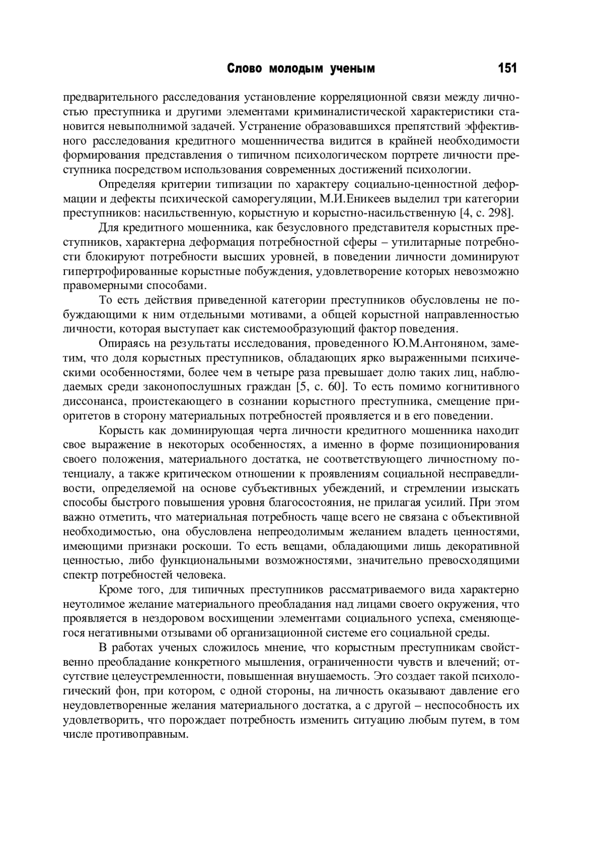 6. Григорян А.А. Личность мошенника как элемент криминалистической характеристики преступления // Теория и практика общественного развития. 2011. № 3. С. 250-251. EDN: OYKELL