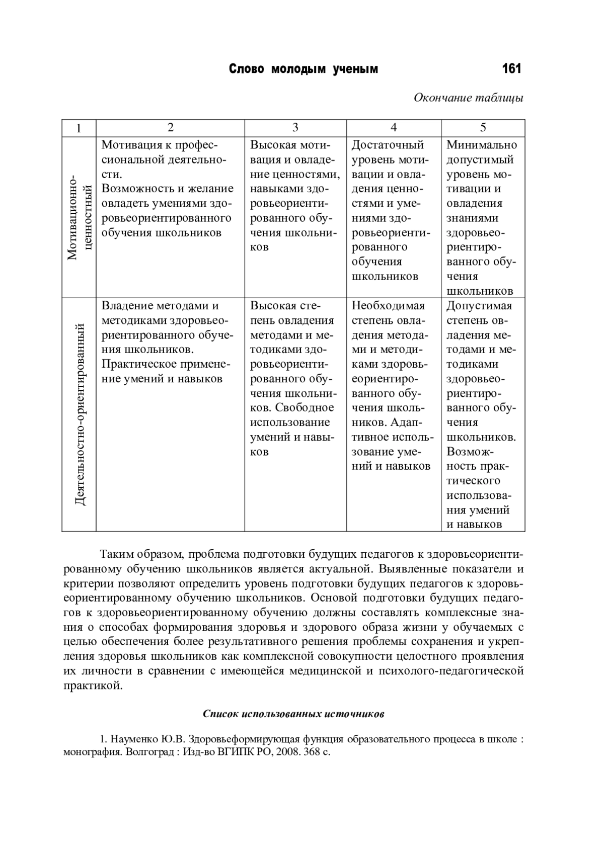 9. Артеменко Б.А., Валеева Г.В., Тюмасева З.И. Модель психологической готовности студентов педагогического вуза к здоровьесберегающей деятельности в общеобразовательных организациях // Вестник ТвГУ. Серия «Педагогика и психология». 2016. Вып. 1. С. 80-90. EDN: WDCIYP