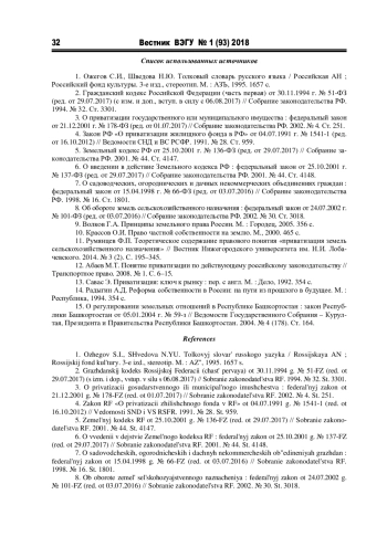 8. Об обороте земель сельскохозяйственного назначения: федеральный закон от 24.07.2002 г. № 101-ФЗ (ред. от 03.07.2016) // Собрание законодательства РФ. 2002. № 30. Ст. 3018.