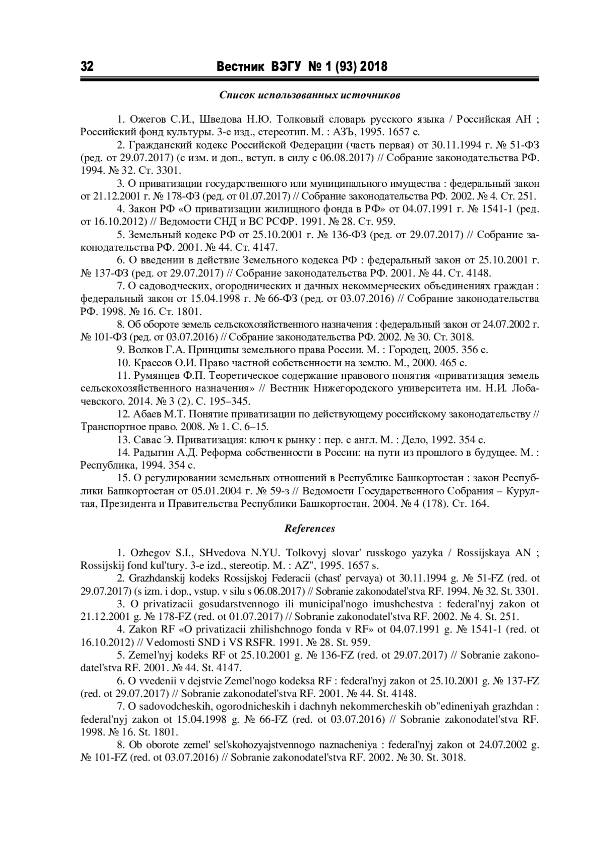 11. Румянцев Ф.П. Теоретическое содержание правового понятия «приватизация земель сельскохозяйственного назначения» // Вестник Нижегородского университета им. Н.И. Лобачевского. 2014. № 3 (2). С. 195-345.