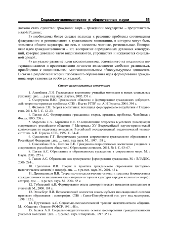 11. Дранишников В.В. Теоретико-методологические основы и практика формирования гражданственности школьников (на материале истории и культуры народов кольского севера): автореф. дис. … д-ра пед. наук. М., 2004. 55 с. EDN: ZMVOPH