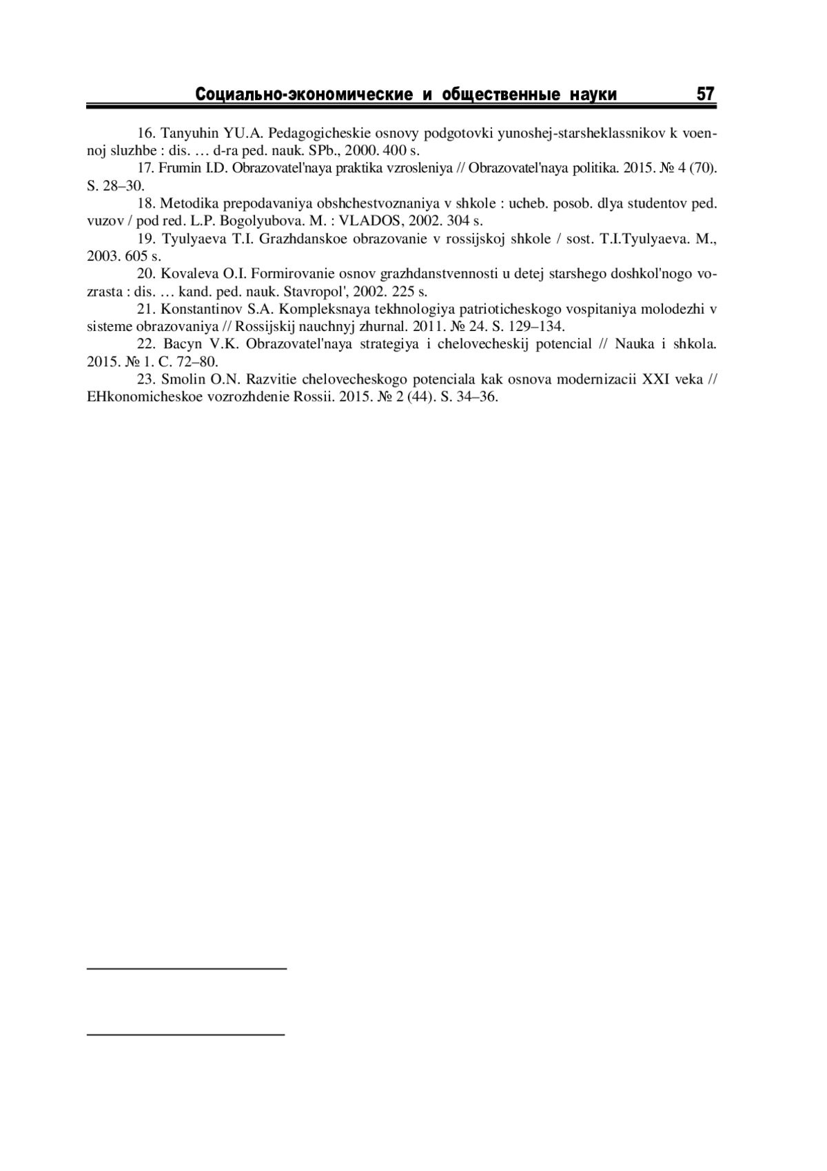 22. Бацын В.К. Образовательная стратегия и человеческий потенциал//Наука и школа. 2015. № 1. C. 72-80. EDN: TKQEUZ