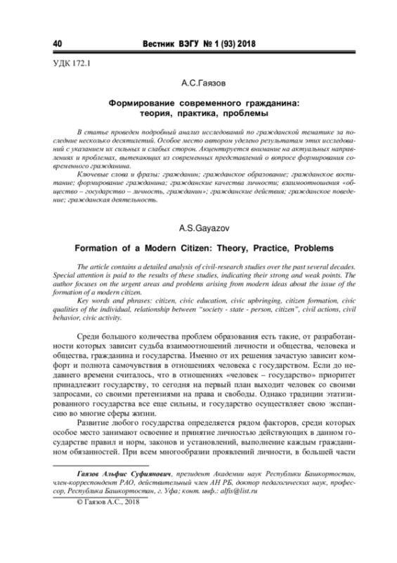 4. Гаязов А.С. Формирование гражданина: теория, практика, проблемы. Челябинск: Факел, 1995. 238 с. EDN: RHAVAP