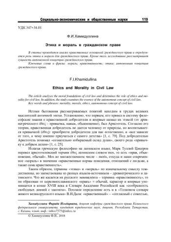 В статье проводится анализ нравственных оснований гражданского права и определяется роль этики и морали для гражданского права. Кроме того, исследование рассматривает сущность автономной концепции гражданского права