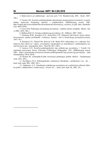 4. Воронов Д.И. Социально-психологические детерминанты компьютерной зависимости и ее профилактика средствами физической рекреации и психокоррекции. [Электронный ресурс]. URL: http://lesgaft.spb.ru/sites/default/files/dissertation/diss/dissertaciya_voronova_d.i.pdf (дата обращения: 08.01.2018).