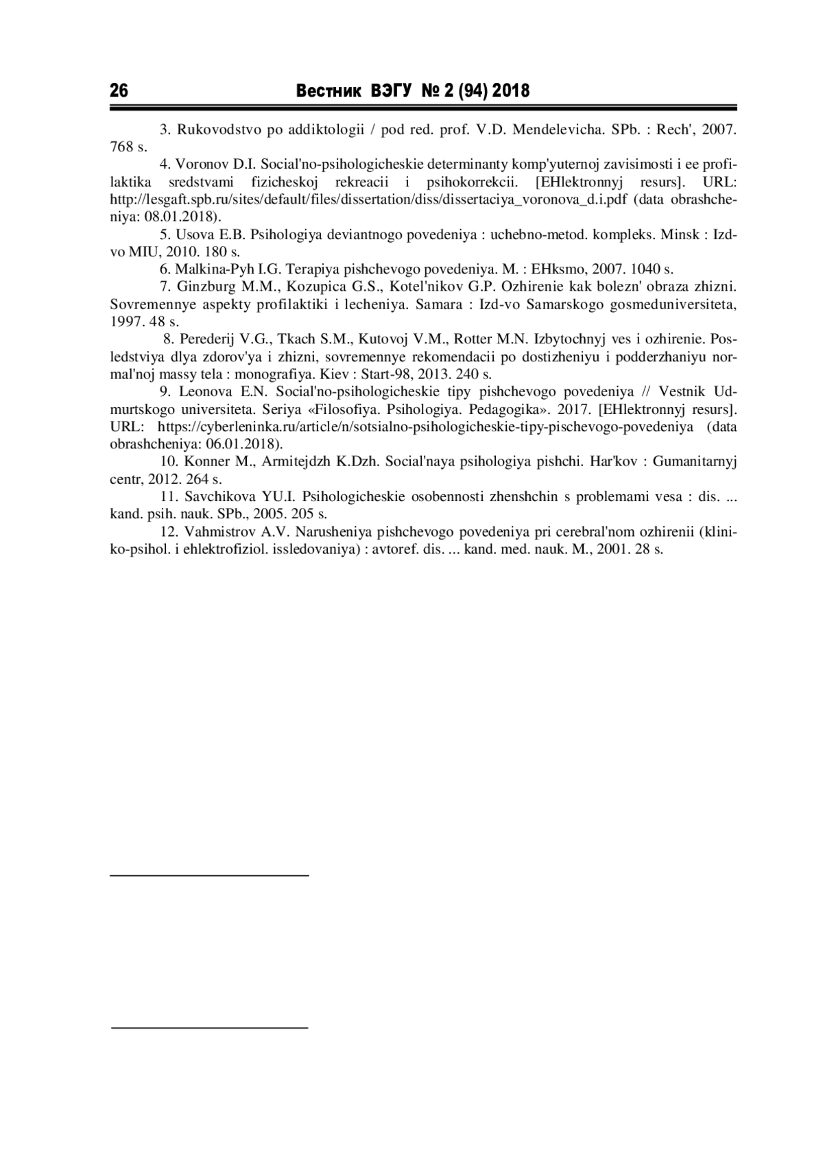 9. Леонова Е.Н. Социально-психологические типы пищевого поведения // Вестник Удмуртского университета. Серия “Философия. Психология. Педагогика”. 2017..