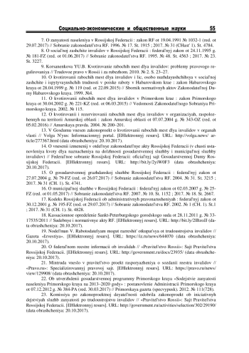 11. О квотировании рабочих мест для инвалидов в Приморском крае: закон Приморского края от 30.04.2002 г. № 221-КЗ (ред. от 06.03.2015) // Ведомости Законодательного Собрания Приморского края. 2002. № 115.