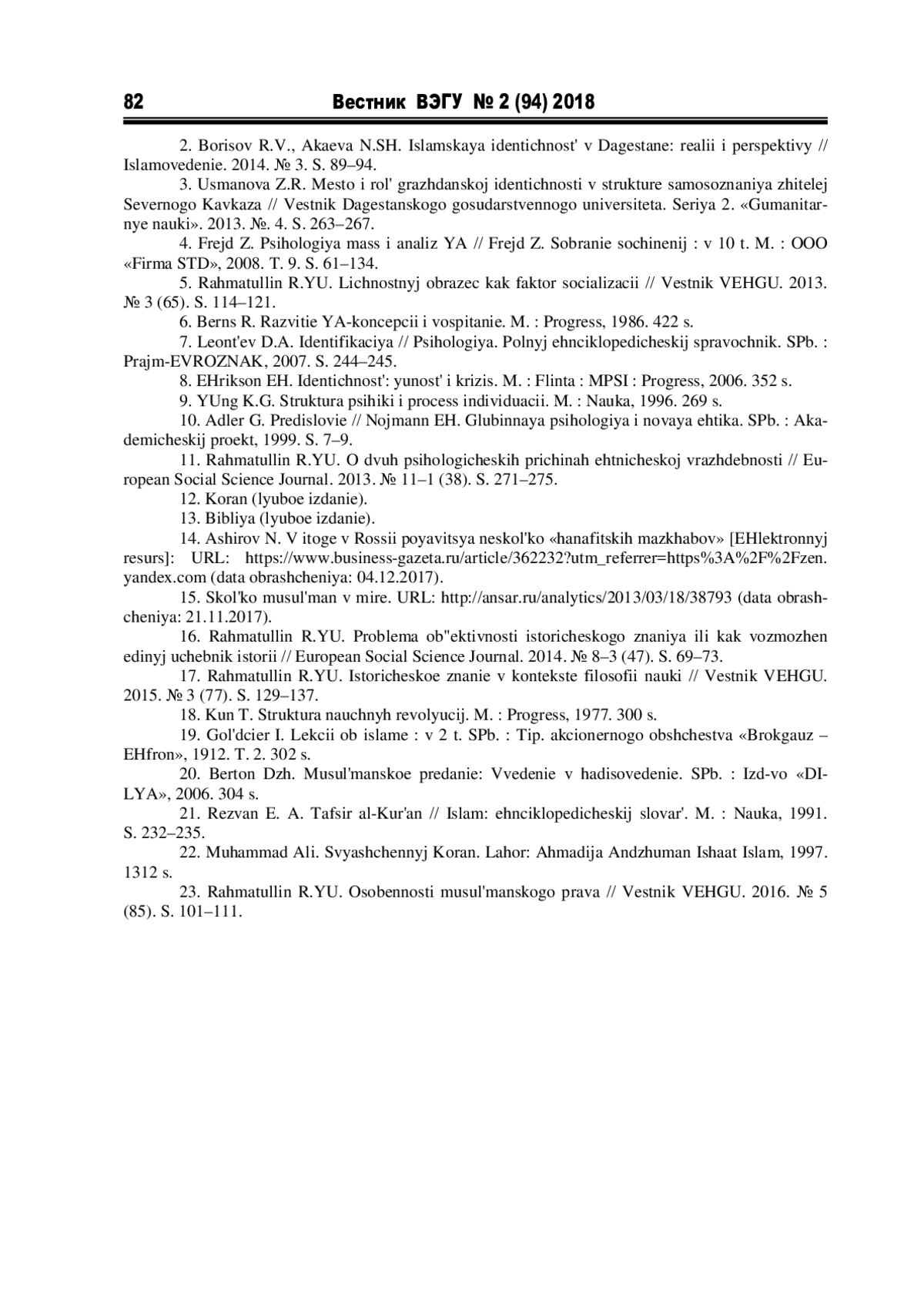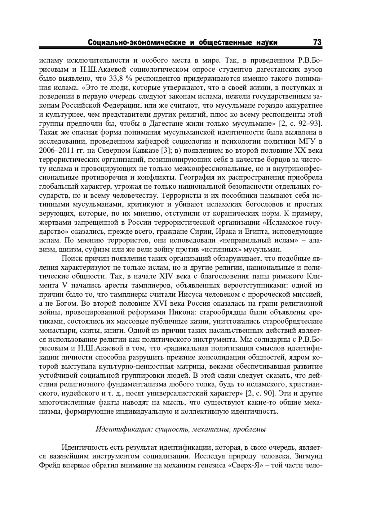 2. Борисов Р.В., Акаева Н.Ш. Исламская идентичность в Дагестане: реалии и перспективы // Исламоведение. 2014. № 3. С. 89-94. EDN: TABLXF