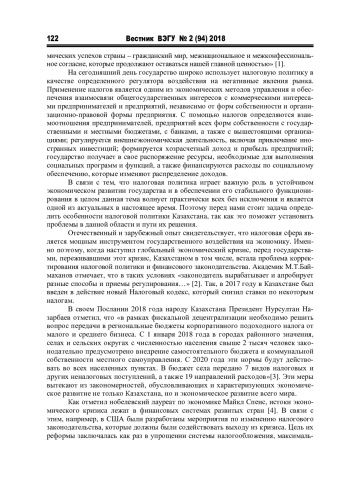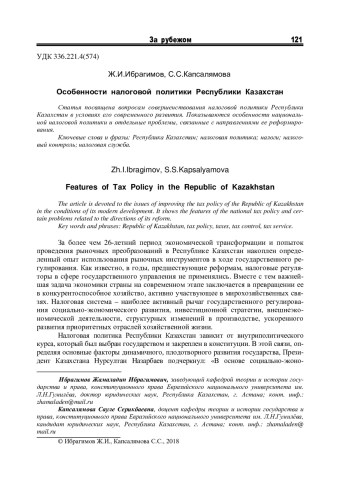 За более чем 26-летний период экономической трансформации и попыток проведения рыночных преобразований в Республике Казахстан накоплен определенный опыт использования рыночных инструментов в ходе государственного регулирования. Как известно, в годы, предшествующие реформам, налоговые регуляторы в сфере государственного управления не применялись. Вместе с тем важнейшая задача экономики страны на современном этапе заключается в превращении ее в конкурентоспособное хозяйство, активно участвующее в мирохозяйственных связях. Налоговая система – наиболее активный рычаг государственного регулирования социально-экономического развития, инвестиционной стратегии, внешнеэкономической деятельности, структурных изменений в производстве, ускоренного развития приоритетных отраслей хозяйственной жизни.
