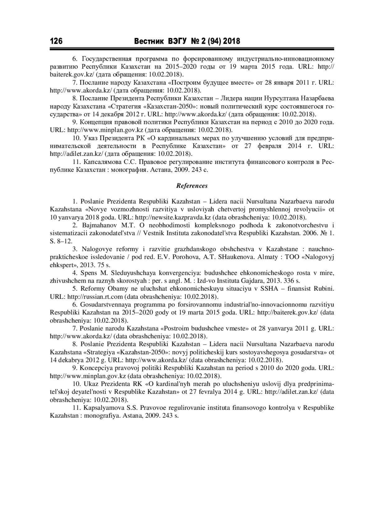 8. Послание Президента Республики Казахстан - Лидера нации Нурсултана Назарбаева народу Казахстана «Стратегия «Казахстан-2050»: новый политический курс состоявшегося государства» от 14 декабря 2012 г. URL: http://www.akorda.kz/ (дата обращения: 10.02.2018).