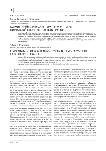 В статье рассматриваются теоретические вопросы комментирования литературного произведения и методика создания и использования комментария на уроках литературного чтения в начальной школе. Отмечается, что комментарий - важный инструмент изучения литературы в начальной школе. Он помогает понимать тексты, развивает критическое и образное мышление, формирует общекультурную компетентность учащихся.