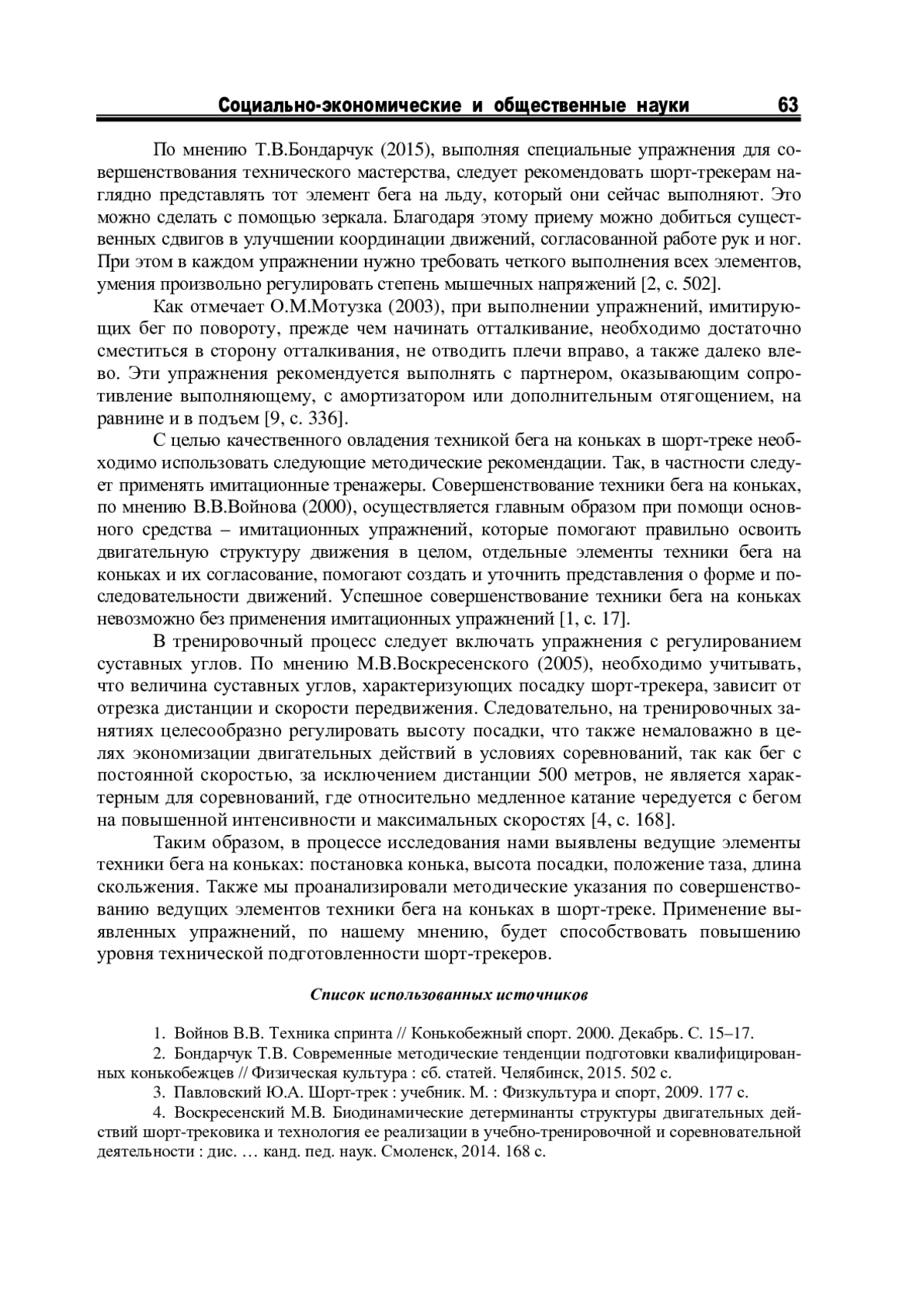 4. Воскресенский М.В. Биодинамические детерминанты структуры двигательных действий шорт-трековика и технология ее реализации в учебно-тренировочной и соревновательной деятельности: дис. … канд. пед. наук. Смоленск, 2014. 168 с.