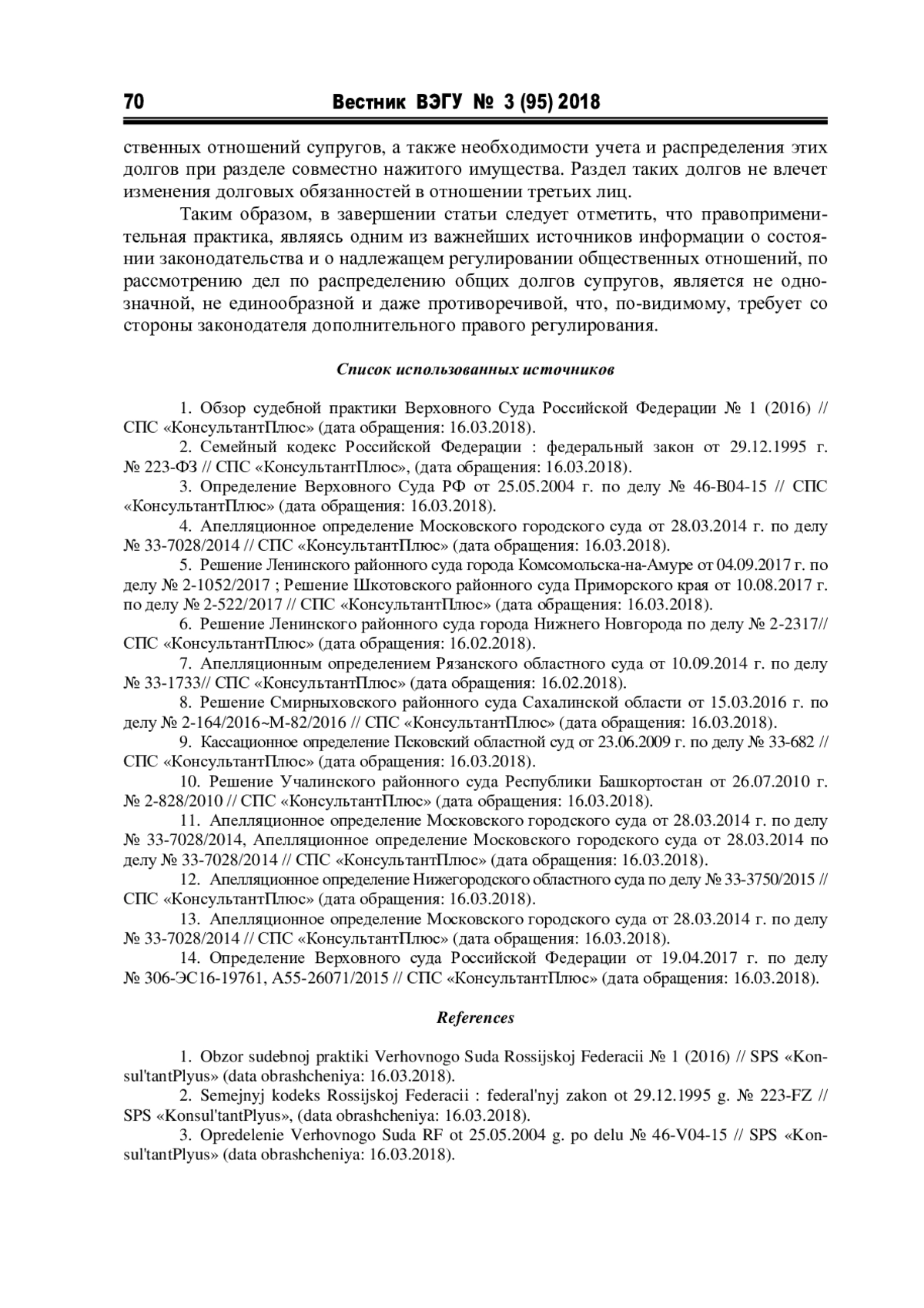 1. Обзор судебной практики Верховного Суда Российской Федерации № 1 (2016) // СПС «КонсультантПлюс» (дата обращения: 16.03.2018).