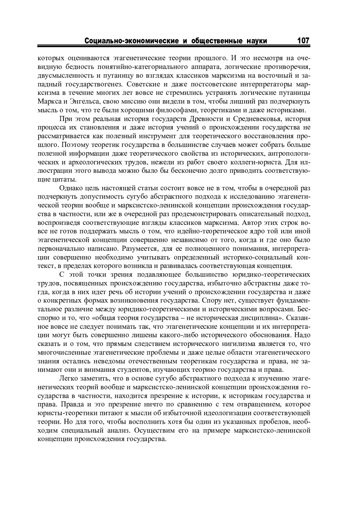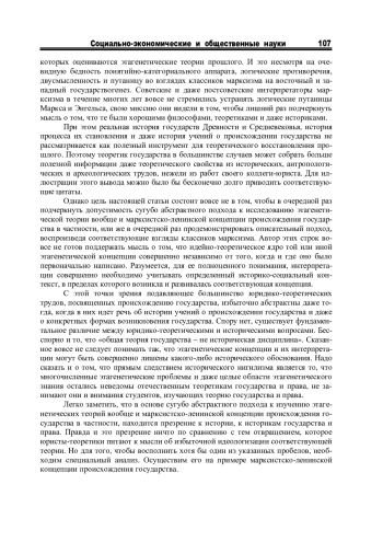 Отметив столетие Октябрьского переворота, надо признать, что в теоретическом познании государства нашей страны почти век доминировали предположения, методы и аргументы марксистко-ленинской философии вообще и исторического материализма в частности. Привлекая внимание к некоторым из негативных последствий развития этагенетической теории в этом ключе, следует рассмотреть и альтернативную перспективу для формулировки и интерпретации данной области познания