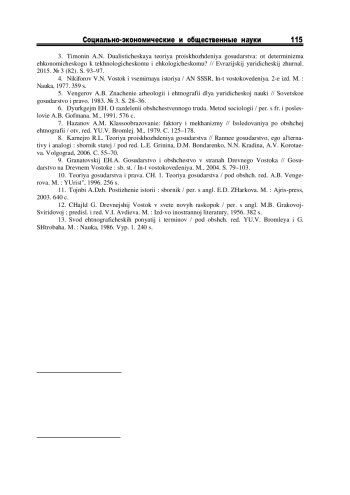 3. Тимонин А.Н. Дуалистическая теория происхождения государства: от детерминизма экономического к технологическому и экологическому? // Евразийский юридический журнал. 2015. № 3 (82). С. 93-97. EDN: TOMLBH