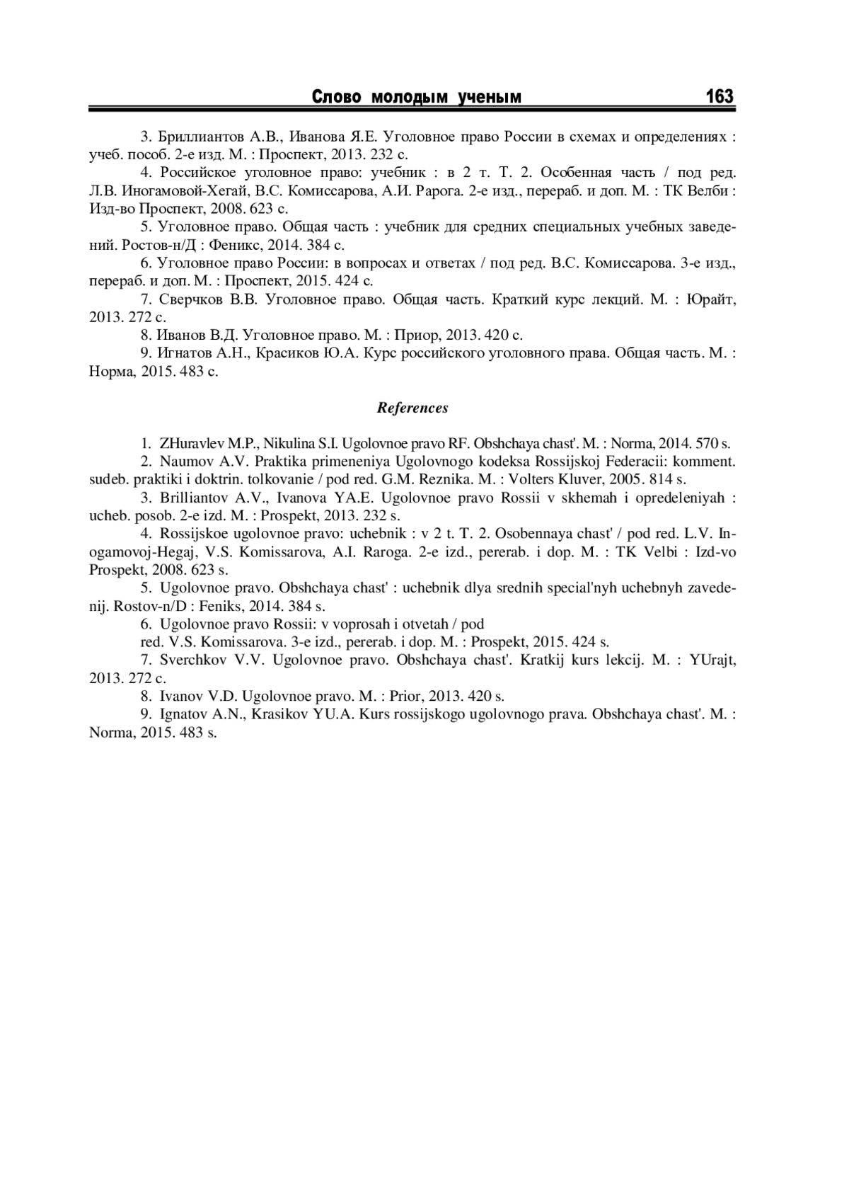3. Бриллиантов А.В., Иванова Я.Е. Уголовное право России в схемах и определениях: учеб. пособ. 2-е изд. М.: Проспект, 2013. 232 с.