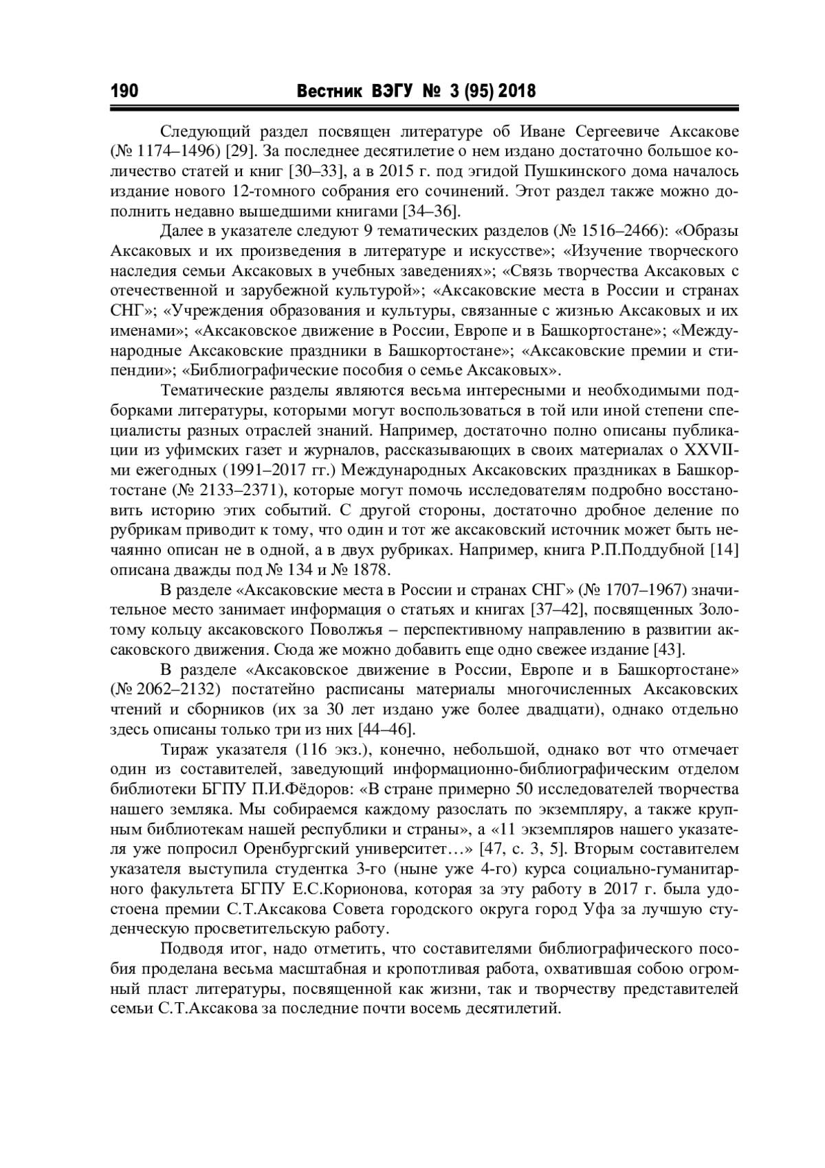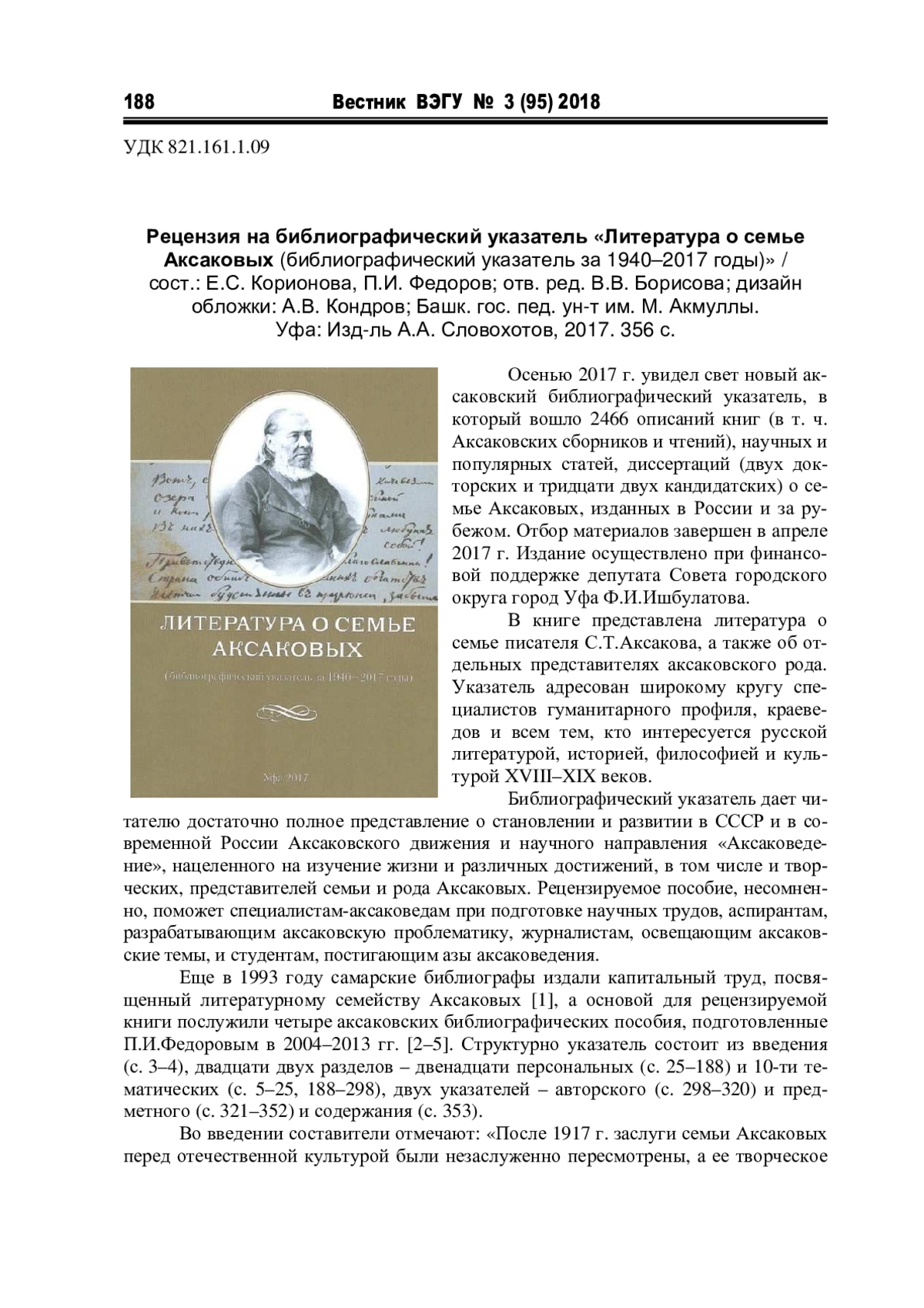 6. Литература о семье Аксаковых (библиографический указатель за 1940-2017 годы)/сост.: Е.С. Корионова, П.И. Фёдоров; отв. ред. В.В. Борисова; дизайн обложки: А.В. Кондров; Башк. гос. пед. ун-т им. М. Акмуллы. Уфа: Изд-ль А.А. Словохотов, 2017. 356 с.