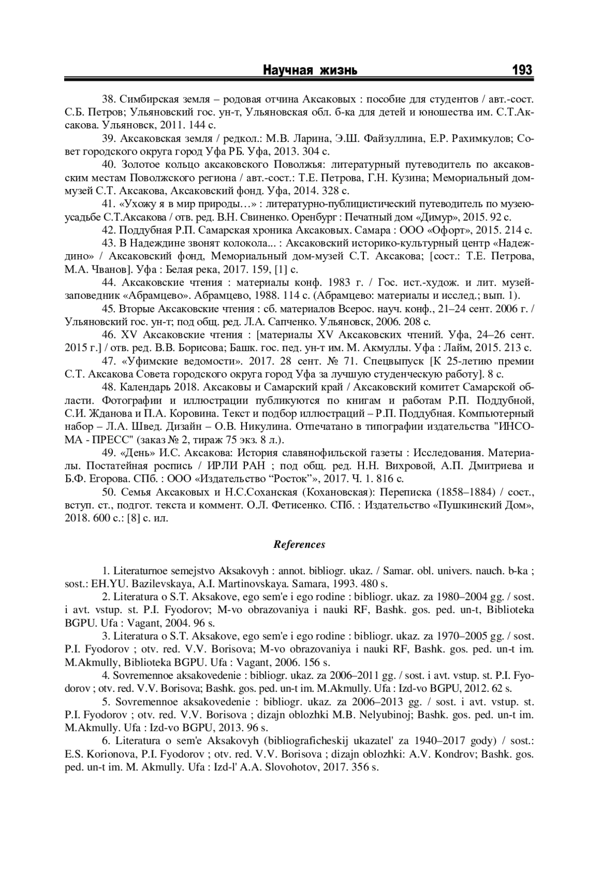 1. Литературное семейство Аксаковых: аннот. библиогр. указ./Самар. обл. универс. науч. б-ка; сост.: Э.Ю. Базилевская, А.И. Мартиновская. Самара, 1993. 480 с.