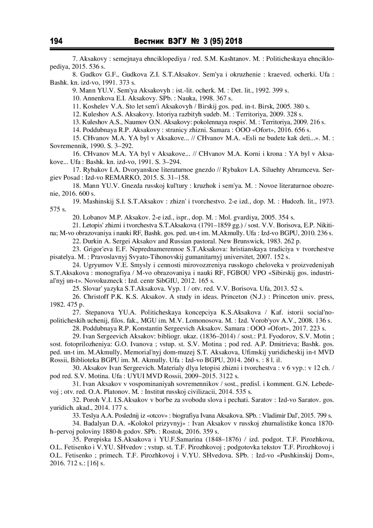 7. Аксаковы: семейная энциклопедия/ред. С.М. Каштанов. М.: Политическая энциклопедия, 2015. 536 с.