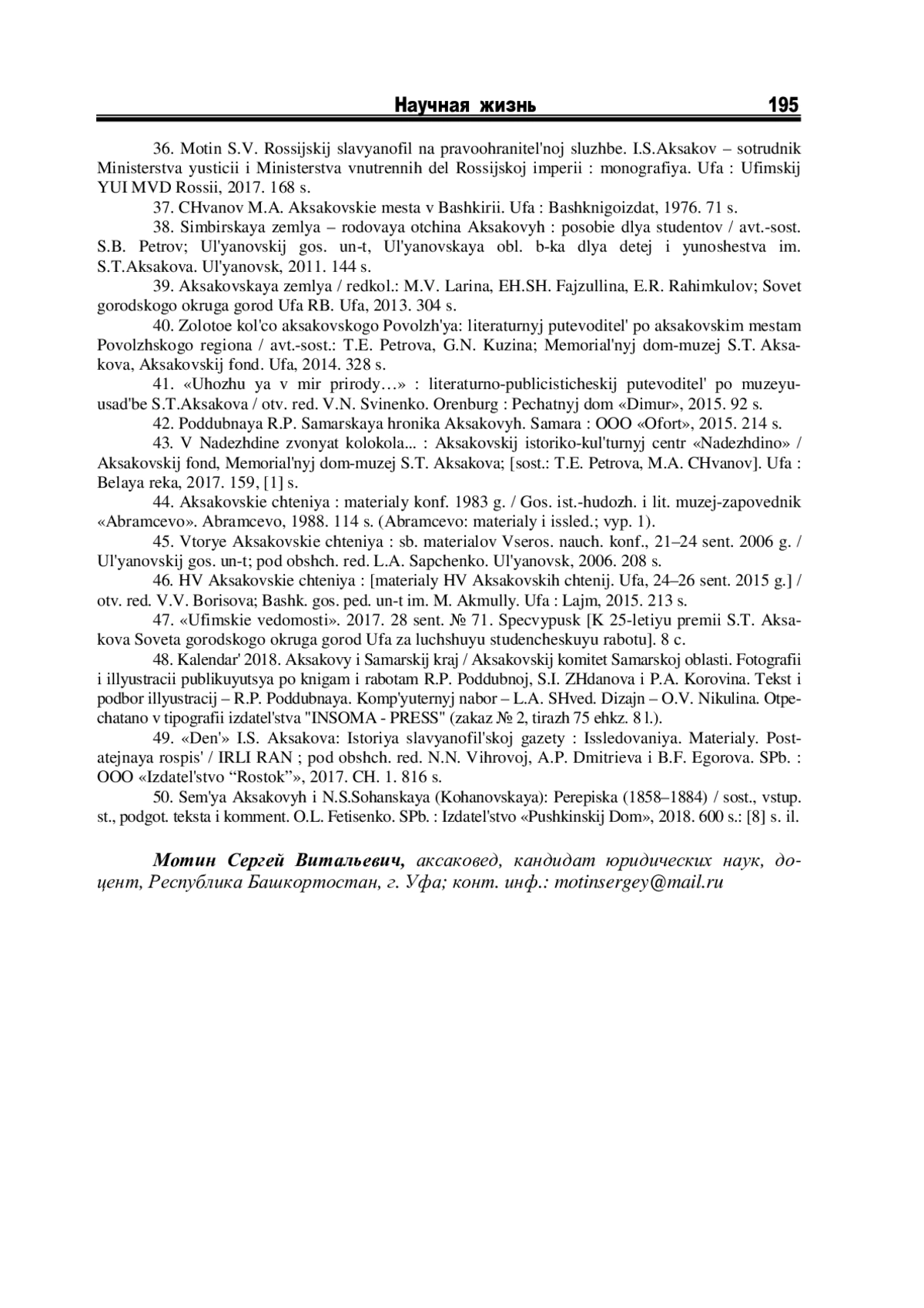 36. Мотин С.В. Российский славянофил на правоохранительной службе. И.С.Аксаков -сотрудник Министерства юстиции и Министерства внутренних дел Российской империи: монография. Уфа: Уфимский ЮИ МВД России, 2017. 168 с.
