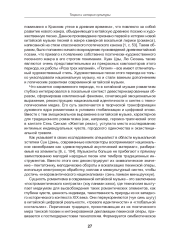 Романтизм, как важная часть европейской культуры XIX века, оказал глубокое влияние на последующее художественное творчество и общественные тенденции Однако сильная эмоциональная выраженность и индивидуализм, присущие романтизму на уровне мироощущения, могут быть описаны как константные характеристики в художественной культуре различных стран и народов, в том числе, и в китайском традиционном музыкальном искусстве