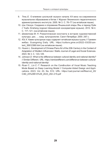 12. Юй Х. Какие культурные коды содержит китайская музыка гуцинь // Гуанмин жибао.Guangming Daily.URL:https://culture.gmw.cn/2022-03/25/con-tent_35612398.html (на китайском языке).