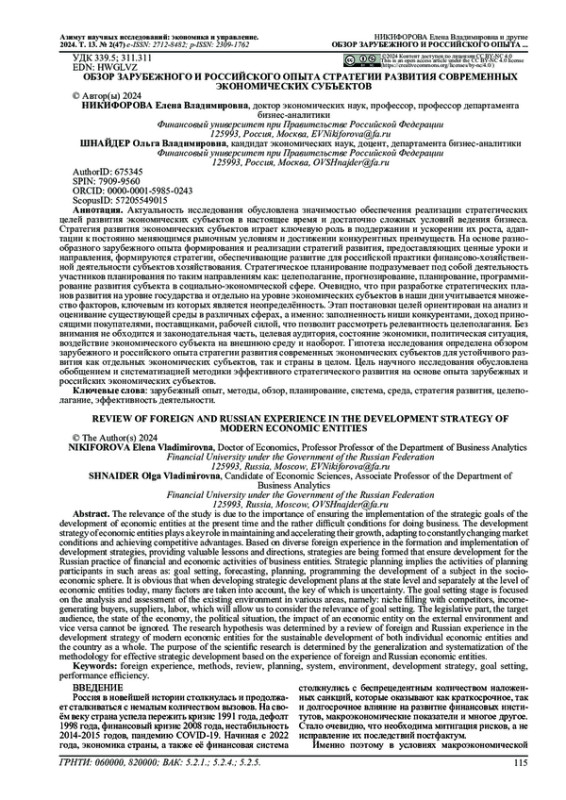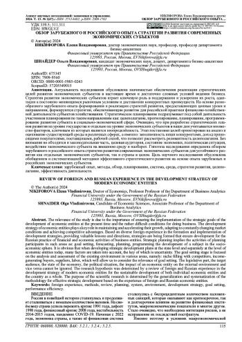 Актуальность исследования обусловлена значимостью обеспечения реализации стратегических целей развития экономических субъектов в настоящее время и достаточно сложных условий ведения бизнеса. Стратегия развития экономических субъектов играет ключевую роль в поддержании и ускорении их роста, адаптации к постоянно меняющимся рыночным условиям и достижении конкурентных преимуществ. На основе разнообразного зарубежного опыта формирования и реализации стратегий развития, предоставляющих ценные уроки и направления, формируются стратегии, обеспечивающие развитие для российской практики финансово-хозяйственной деятельности субъектов хозяйствования. Стратегическое планирование подразумевает под собой деятельность участников планирования по таким направлениям как: целеполагание, прогнозирование, планирование, программирование развития субъекта в социально-экономической сфере. Очевидно, что при разработке стратегических планов развития на уровне государства и отдельно на уровне экономических субъектов в наши дни учитывается множество факторов, ключевым из которых является неопределённость. Этап постановки целей ориентирован на анализ и оценивание существующей среды в различных сферах, а именно: заполненность ниши конкурентами, доход приносящими покупателями, поставщиками, рабочей силой, что позволит рассмотреть релевантность целеполагания. Без внимания не обходится и законодательная часть, целевая аудитория, состояние экономики, политическая ситуация, воздействие экономического субъекта на внешнюю среду и наоборот. Гипотеза исследования определена обзором зарубежного и российского опыта стратегии развития современных экономических субъектов для устойчивого развития как отдельных экономических субъектов, так и страны в целом. Цель научного исследования обусловлена обобщением и систематизацией методики эффективного стратегического развития на основе опыта зарубежных и российских экономических субъектов.