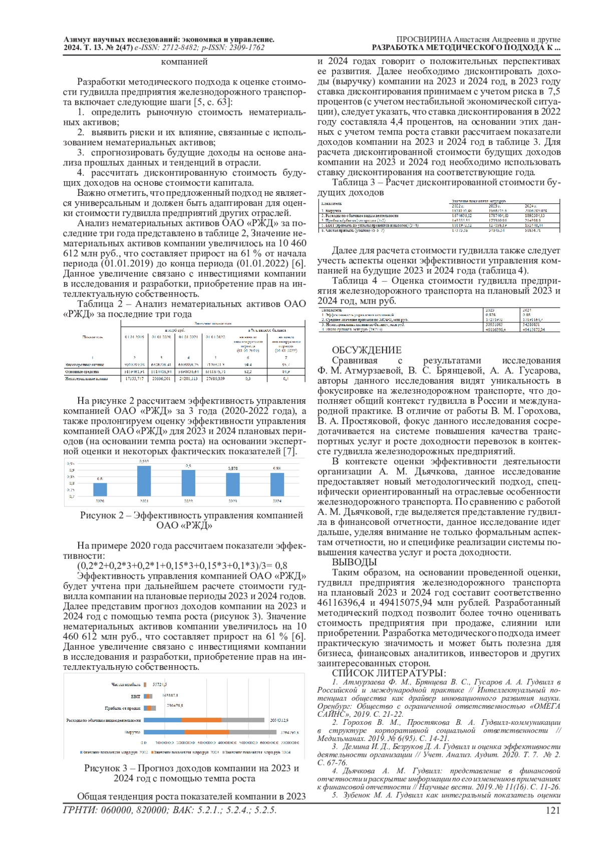 Разработка методического подхода к оценке стоимости гудвилла предприятия железнодорожного транспорта имеет высокую актуальность – это может помочь компаниям более точно оценивать свою стоимость, принимать решения о продаже, слияниях и приобретениях, а также эффективнее управлять своими нематериальными активами и развивать свой бизнес в соответствии с рыночными требованиями.