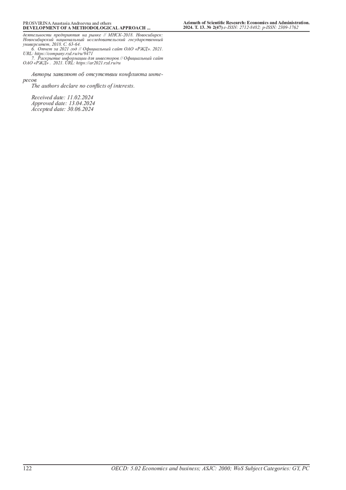 6. Отчет за 2021 год // Официальный сайт ОАО “РЖД”. 2021. URL: https://company.rzd.ru/ru/9471.