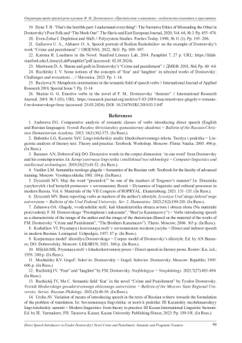26. Shairar G. G. Emotive verbs in the novel of F. M. Dostoyevsky “demons” // International Research Journal. 2019. № 5 (83). URL: https://research-journal.org/archive/5-83-2019-may/emotivnye-glagoly-v-romane-f-m-dostoevskogo-besy (accessed: 28.03.2024). DOI: 10.23670/IRJ.2019.83.5.047