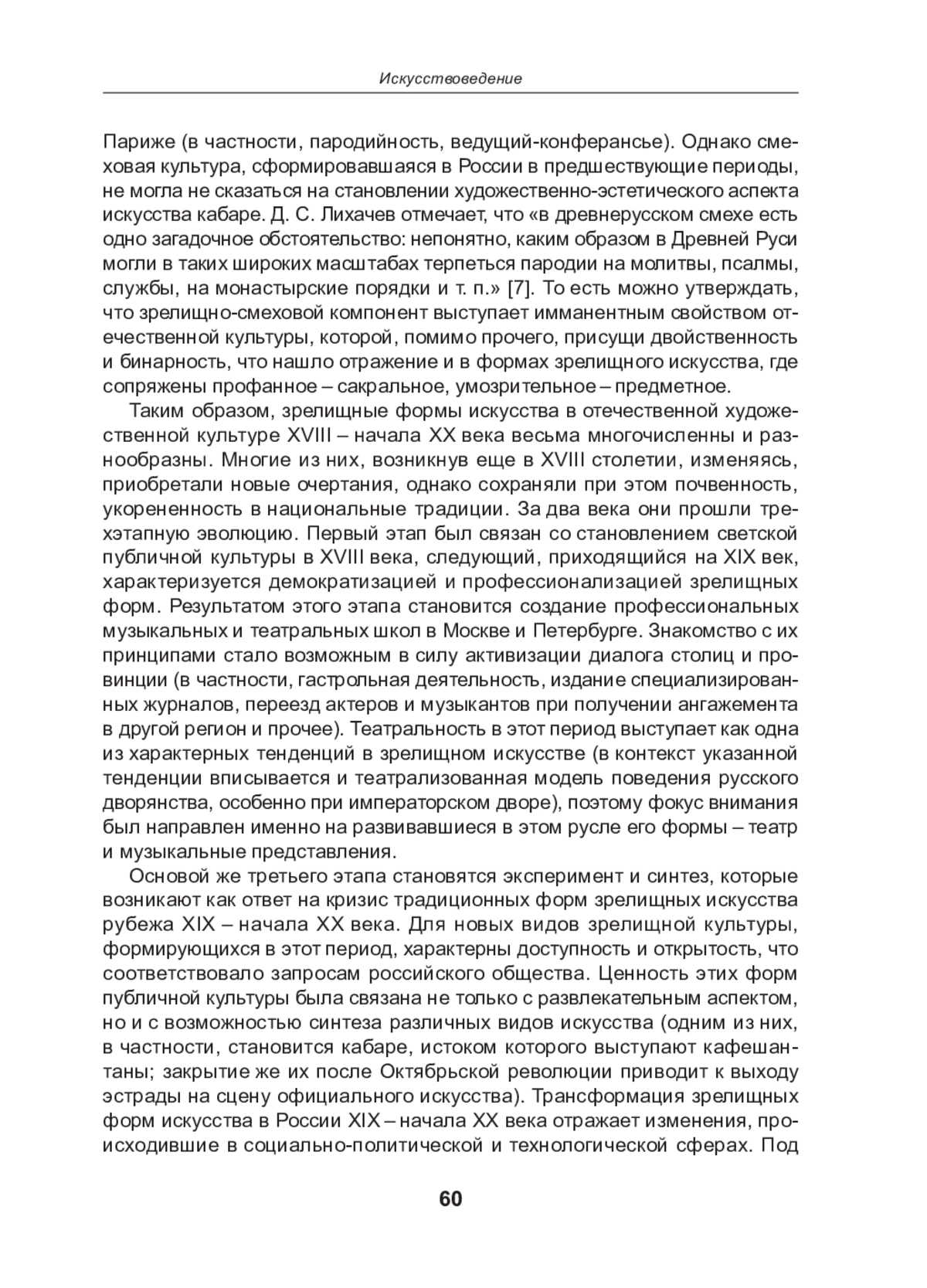 9. Соковиков С. С. Русская зрелищная культура: целостность в разнообразии художественно эстетических проявлений // Вестник Южно Уральского государственного университета. Серия “Социально гуманитарные науки”. 2018. Т 18. № 4. С. 52-56. EDN: VBFJNU