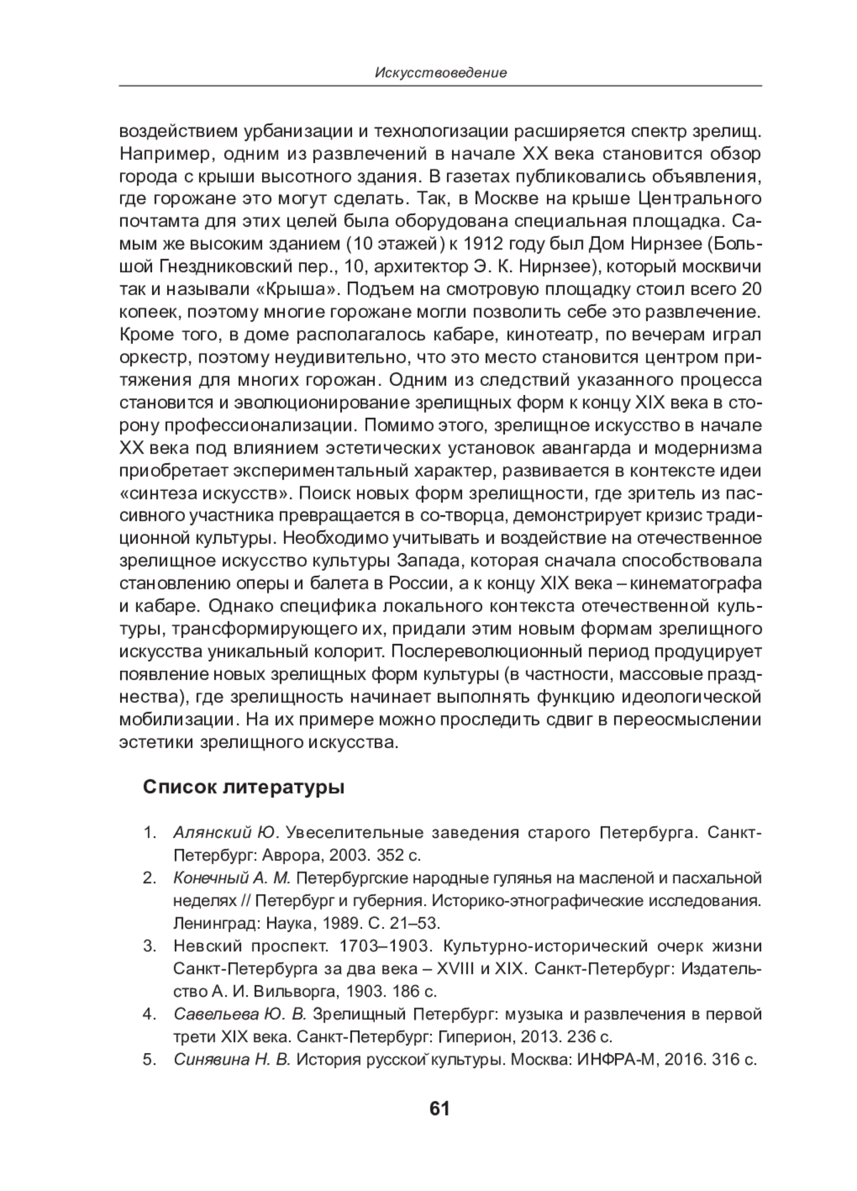 4. Савельева Ю. В. Зрелищный Петербург: музыка и развлечения в первой трети XIX века. Санкт Петербург: Гиперион, 2013. 236 с.