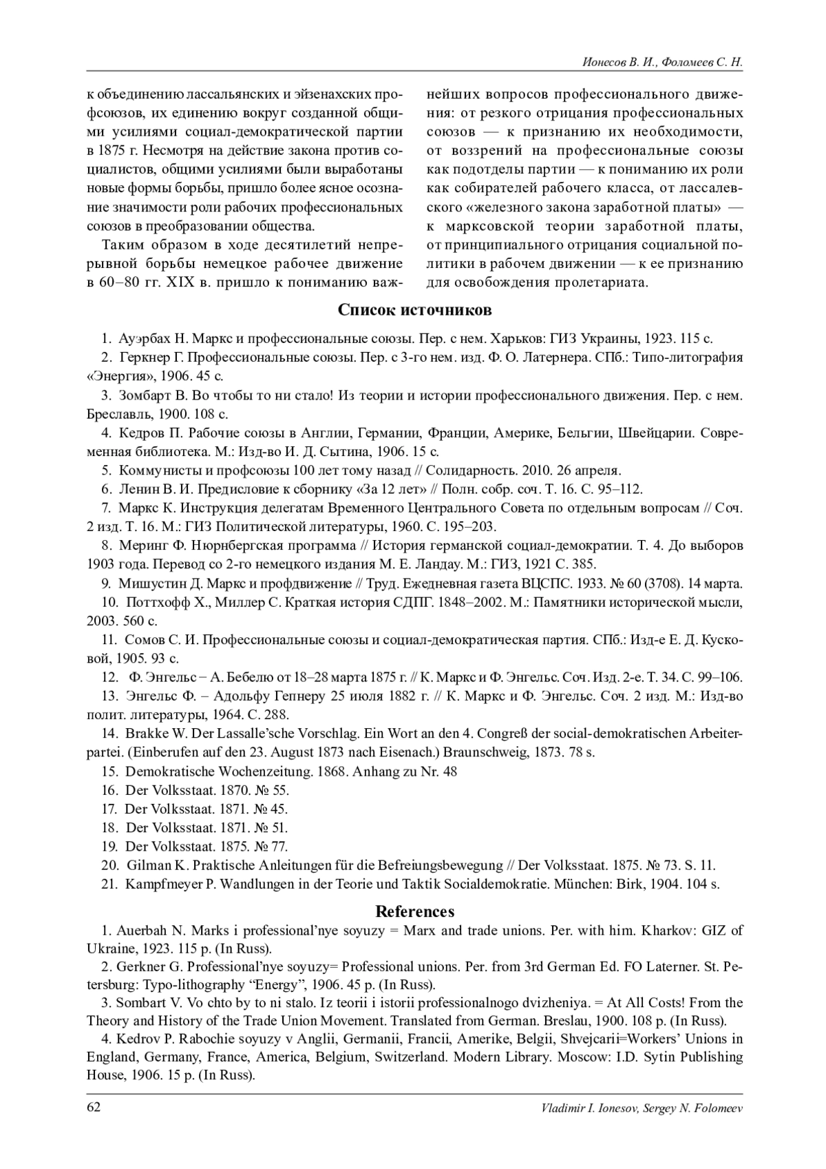 25. Фоломеев С. Н. Власть и социальное законодательство рабочих в Германии второй половины XIX века: намерения и результаты // Известия Самарского научного центра РАН. 2018. № 3. С.163-170.