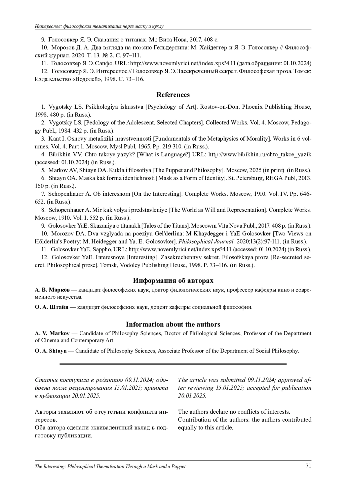 5. Марков А. В., Штайн О. А. Кукла и философия. М., 2025 (в печати).
