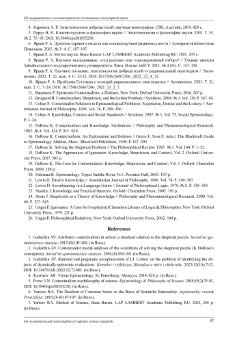 13. Cohen S. Contextualist Solutions to Epistemological Problems: Scepticism, Gettier and the Lottery //Aus-tralasian Journal of Philosophy. 1998. Vol. 76. P. 289-306.