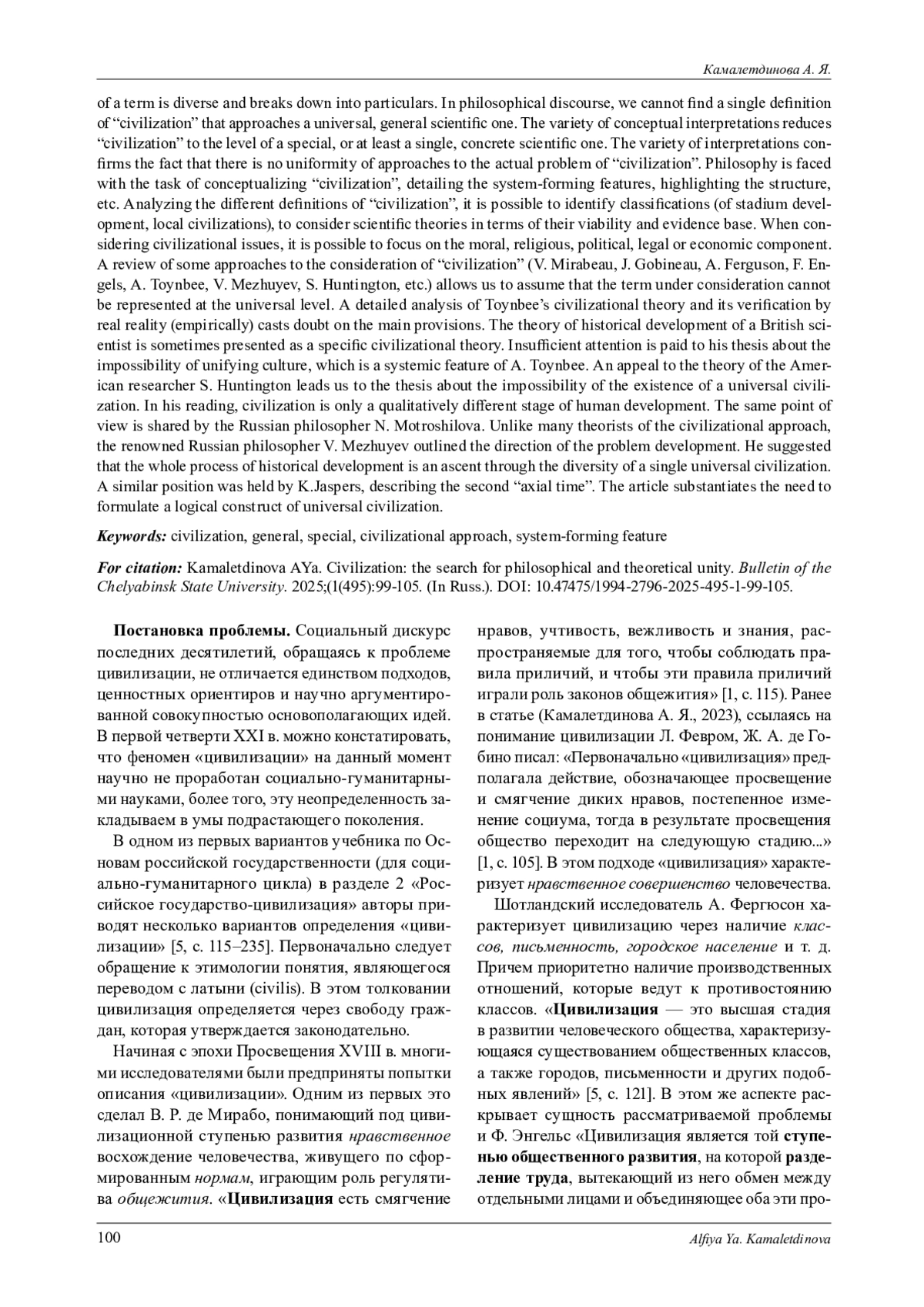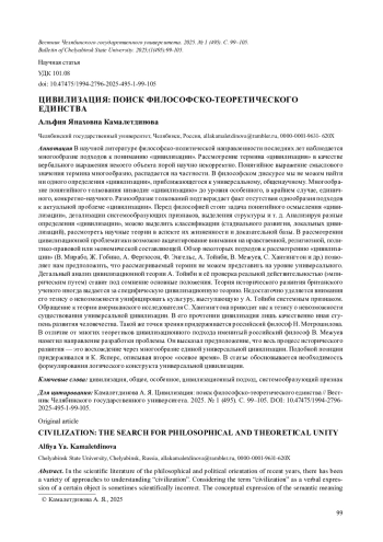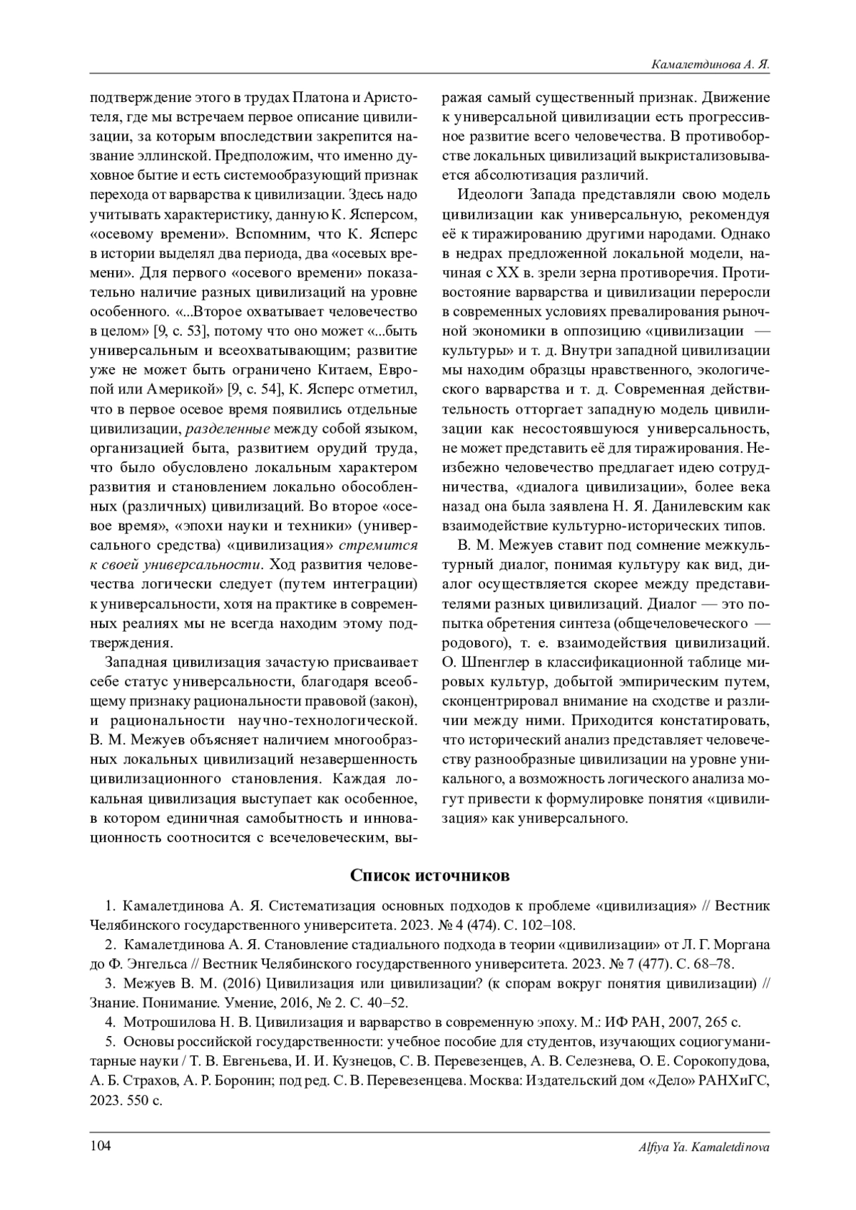 1. Камалетдинова А. Я. Систематизация основных подходов к проблеме “цивилизация” // Вестник Челябинского государственного университета. 2023. № 4 (474). С. 102-108. EDN: ZMSXKM