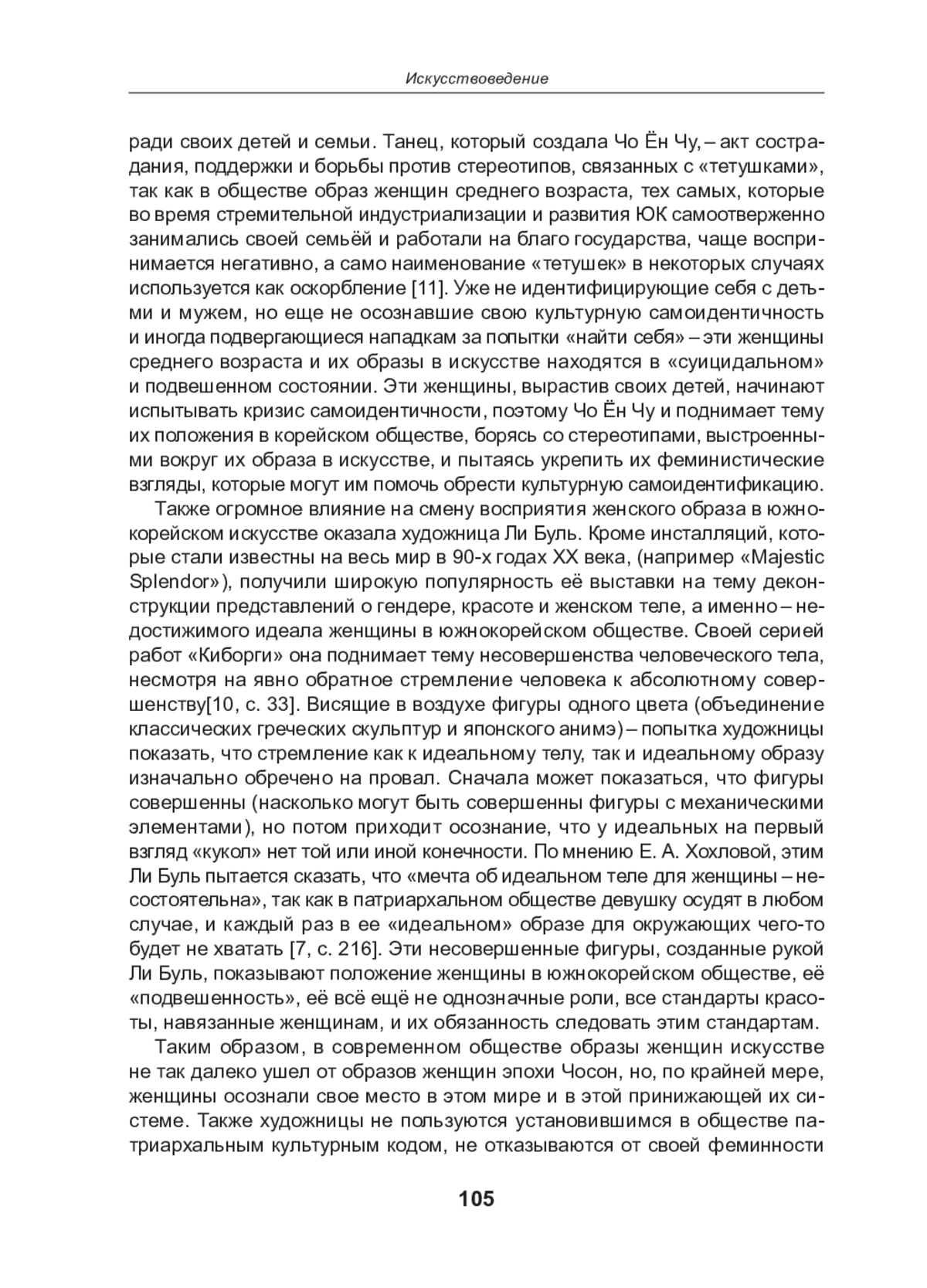 9. Hwa Young Choi Caruso. Art as a Political Act: Expression of Cultural Identity, Self Identity, and Gender by Suk Nam Yun and Yong Soon Min // The Journal Of Aesthetic Education: University of Illinois Press. 2005. № 3 9. P. 71-87. : Lee Bul’s Cyborgs and monsters.// Asian Journal Of Women’s Studies. 2017. № 23(1). P. 29-48.