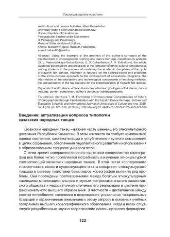 В статье на примере анализа авторских концепций развития хореографической подготовки и систем классификации танцевального наследия (О. В. Всеволодская-Голушкеевич, У. Д. Джанибеков, А. К. Кульбекова) рассматриваются проблемы и перспективы формирования этнокультурных компетенций у студентов в процессе освоения ими учебных дисциплин цикла казахских народных танцев. Внимание фокусируется на противоречиях и проблемах этнокультурного подхода к освоению образовательных программ, взаимосвязи содержательных и технологических компонентов методик обучения, к обоснованию ключевых причин систематизации народных казахских танцев.